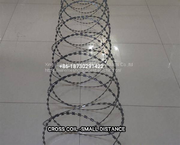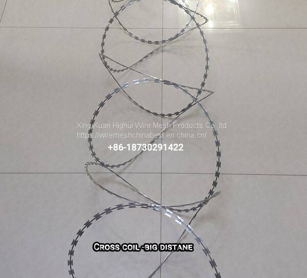 Compared with single loop, cross loops have more fasteners. The fasteners fix the two adjacent razor loops to make them cross, which is of greater strength. The general spacing is 30cm, or it can be made into 15cm or 40cm.