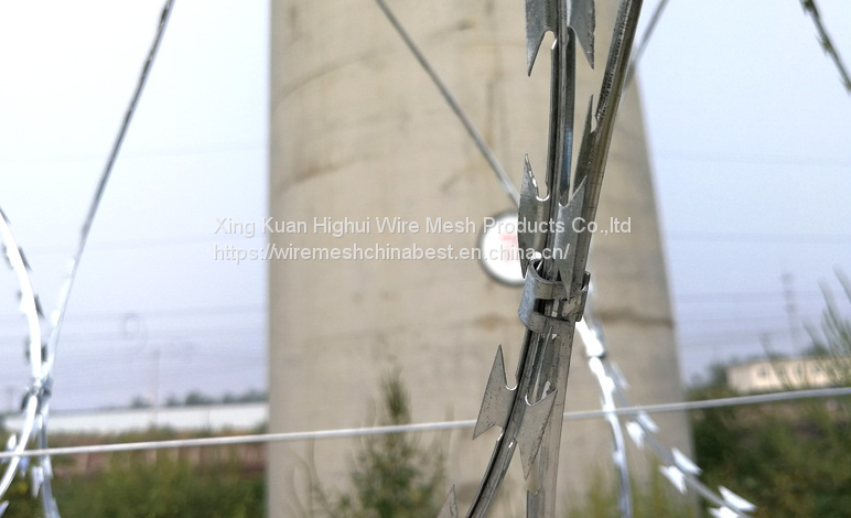 The price of blade barbed wire is much higher than that of ordinary hot dip galvanized barbed wire, because there are many differences in the protection effect.Its production technology and production process is quite different from ordinary hot dip galvanized barbed wire, generally a worker can see two machines, high production efficiency, simple production process, each machine a day can produce more than one ton galvanized barbed wire, blade barbed wire, by contrast, some complex production process, in the first punch the sheet metal stamping, wire is inside the bag again, the final step is to play on the packaging, the entire process down, need several people to cooperate, so the cost would be much higher.
