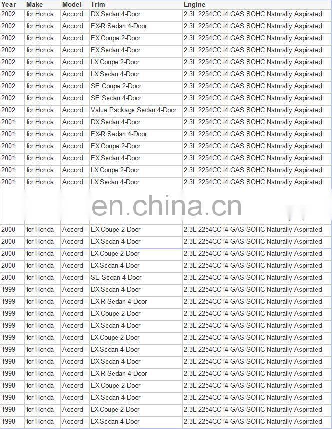 1998  | for Honda  | Accord  | LX Sedan 4-Door  | 2.3L 2254CC l4 GAS SOHC Naturally Aspirated  |