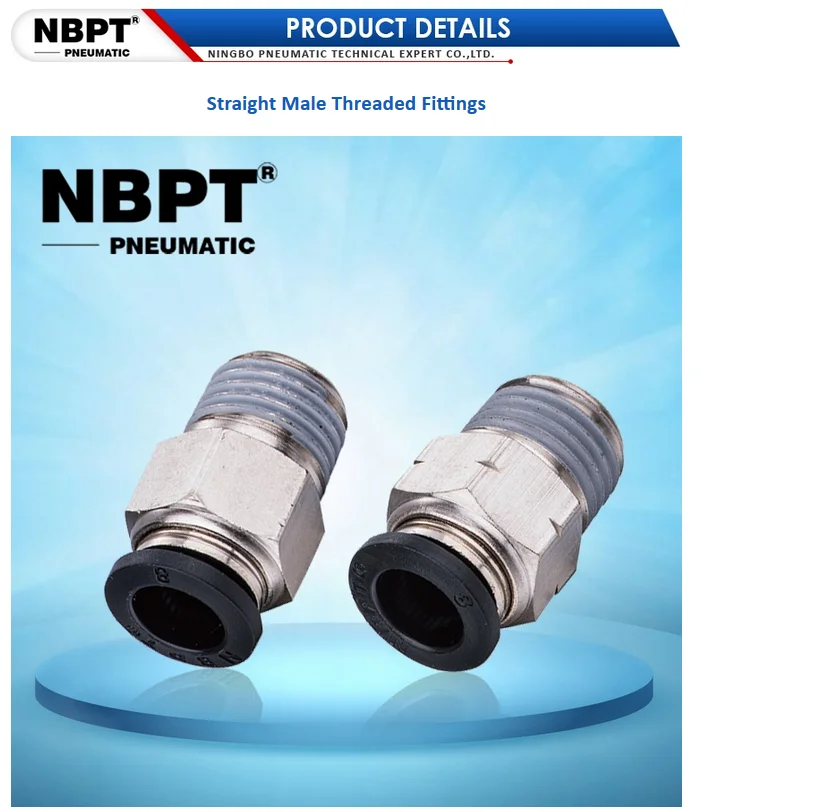 Straight One Touch Male Copper Pneumatic Quick Connect Tube Fittings Applied In Pneumatic Tubing System