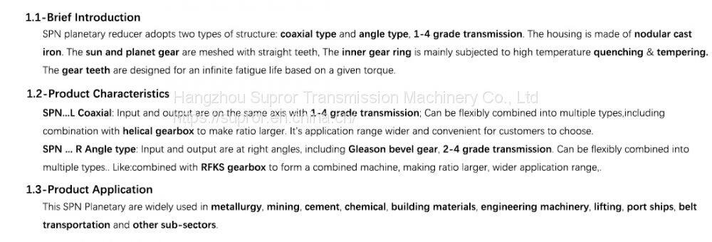 Supror Spn01-Spn21 Planetary Gearbox Reducer With Cooling System