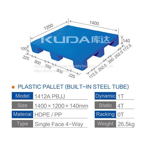Industrial Pallet Solutions of China Manufacturer 1412A PBJJ PLASTIC PALLET(BUILT-IN STEEL TUBE)