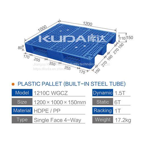 High-density Virgin PE of China Manufacturer 1211B WGTZ PLASTIC PALLET(BUILT-IN STEEL TUBE)