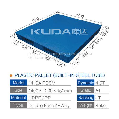 Low Cost Distrubution Pallet of China Manufacturer Good Quality 1412A PBSM PLASTIC PALLET(BUILT-IN STEEL TUBE)
