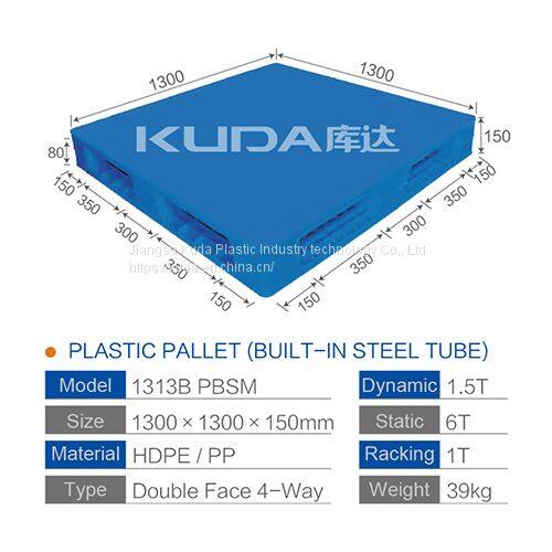 Warehouse Anti-static of Plastic Pallet From China Manufacturer of 1313B PBSM PLASTIC PALLET(BUILT-IN STEEL TUBE)
