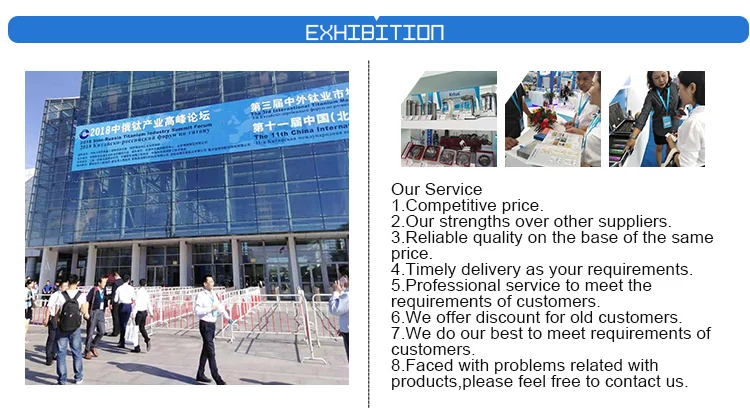 -- Main products: Mill products of titanium (Bar, Wire, Tube, Plate, Foil, Forging and special parts), Titanium outdoor products (Bowel, Spoon, Fork, Bottle, Cup,Pok), and some other Non-ferrous metal products