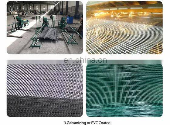 Production process: Material-->straight wire and cut wire-->welded-->hot dipped galvanized--> sanding-->pvc coated or powder painted.