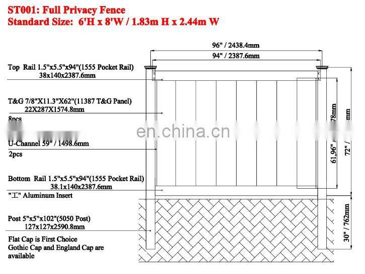 Easy Easy Installation Waterproof 1.8m*1.8m(6ft) DIY Eco-friendly Wood Plastic Composite Panel With Aluminum Wpc Fence