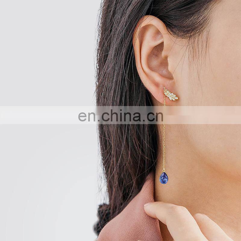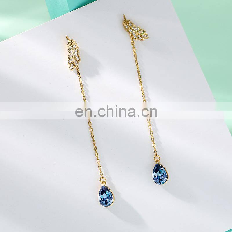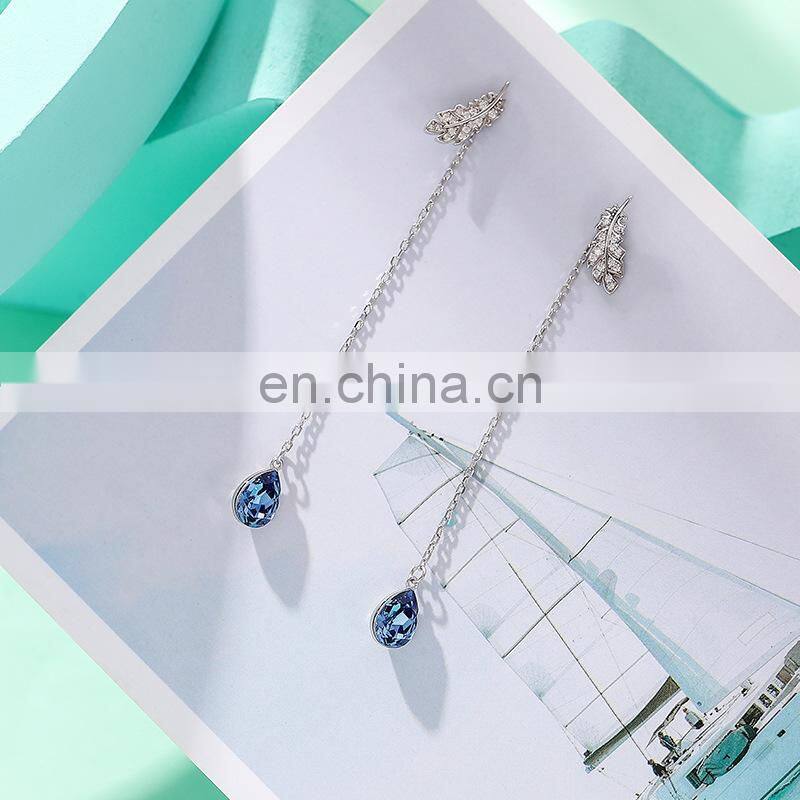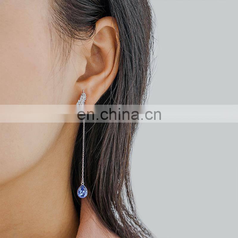 925S Long Drop Blue Crystal Rhinestone Tassel Earrings for Women