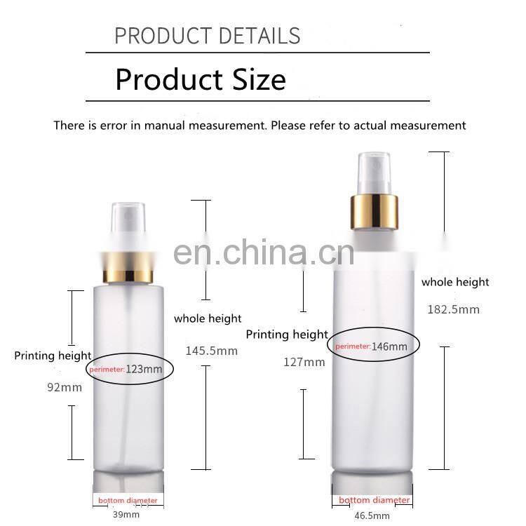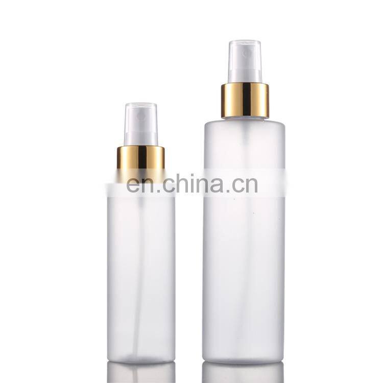 Home > Products > bottles > Bright Gold Ring Sprayer 100-200ml Frosted Flat Shoulder Sprayer Bottle Plastic Separated Bottle