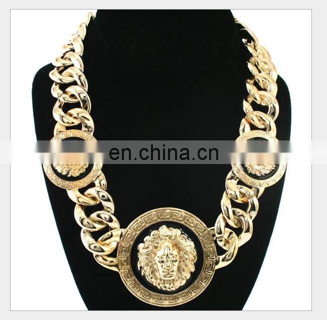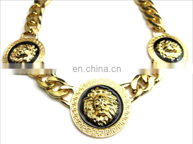 European and American Accessories Fashion High Quality Alloy Dripping Oil Lion Head Gold Necklace