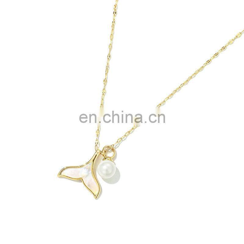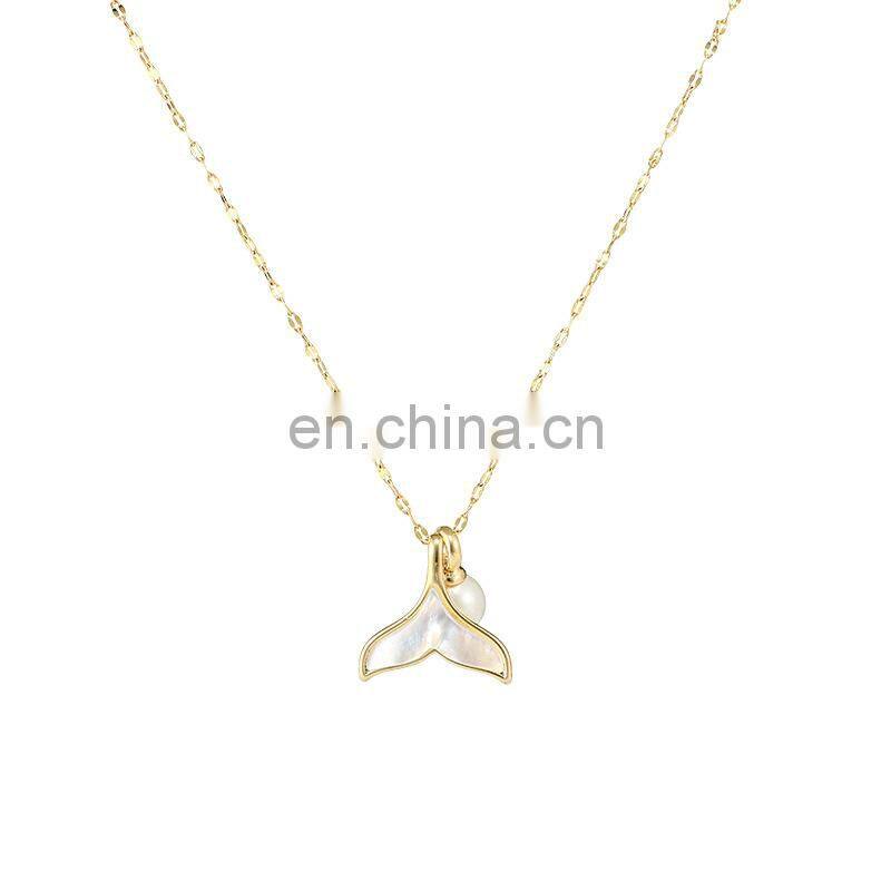 Hot-selling Titanium Steel Necklace Women's Natural Pearl Fishtail Shell Clavicle Necklace