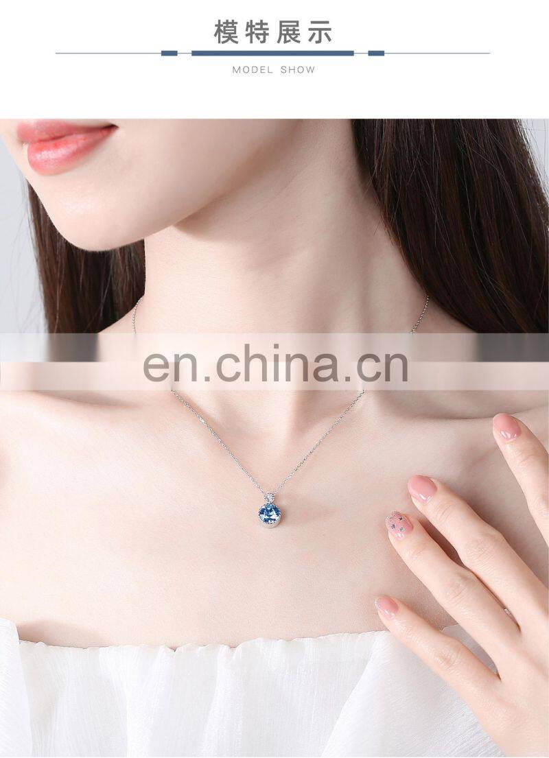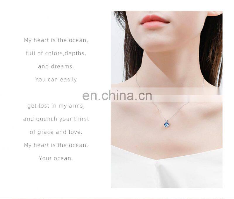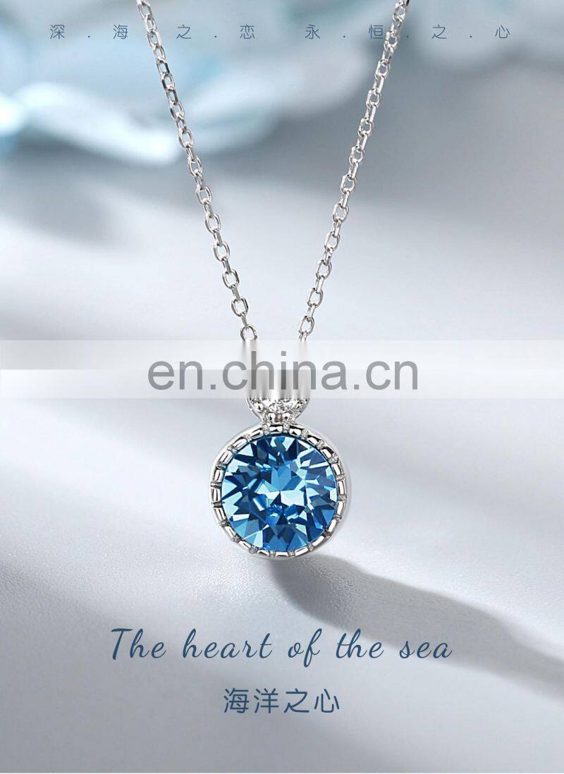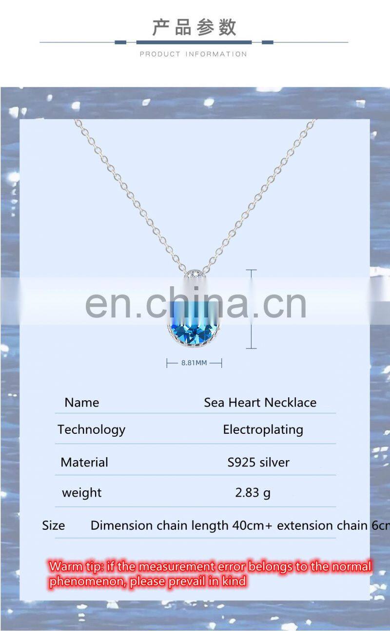 Fashion S925 Sterling Silver Jewelry Ocean Heart Birthstone Pendant Crystal Women Necklace