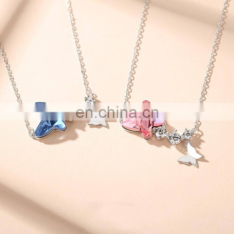 Best Selling High Quality 925 Sterling Silver Butterfly Crystal Pendant Necklace
