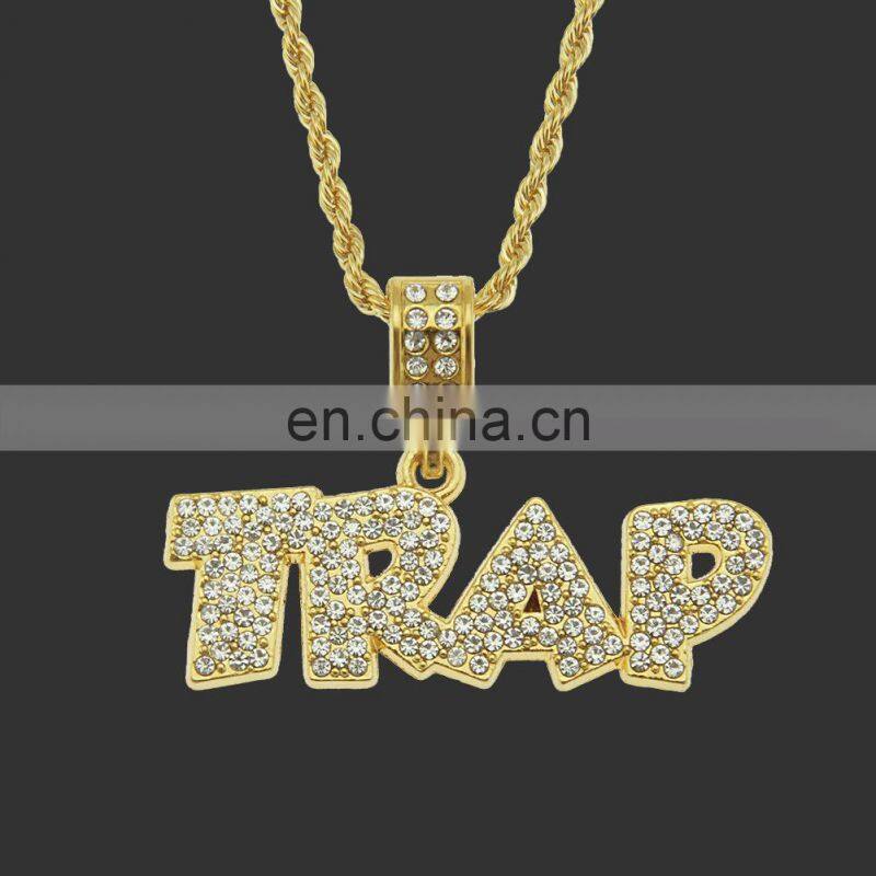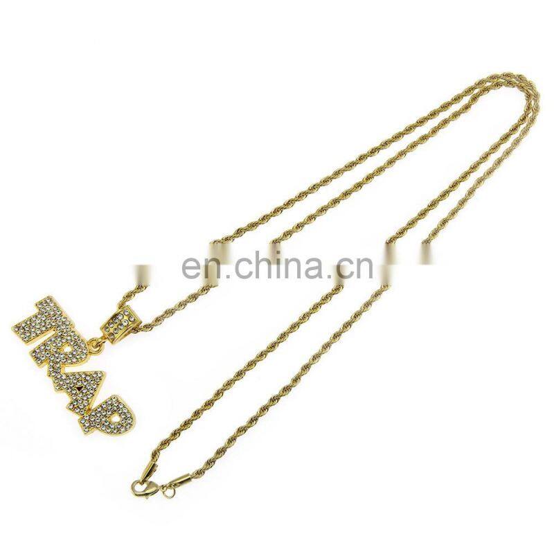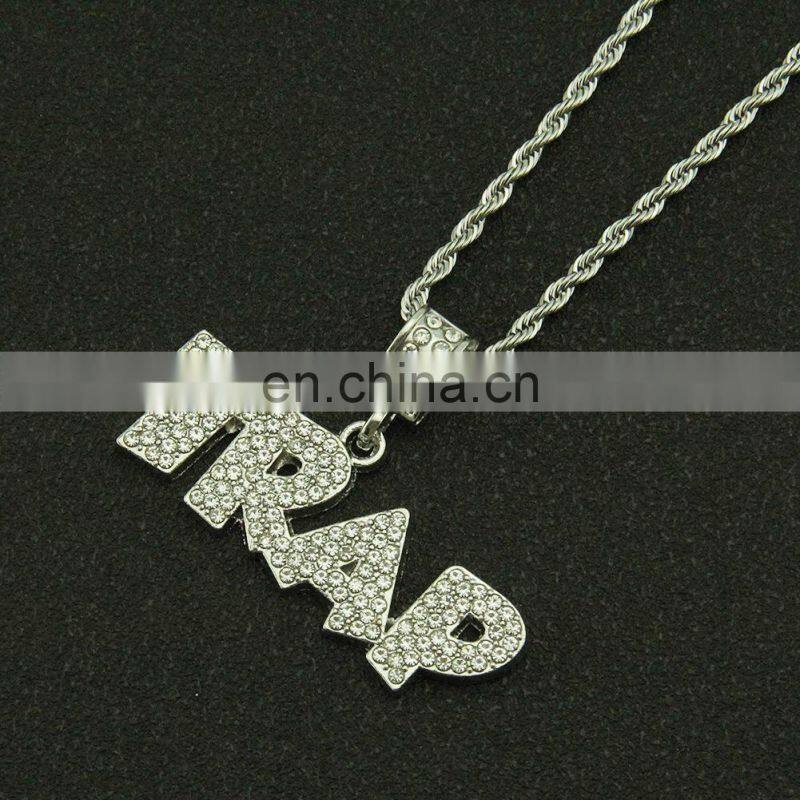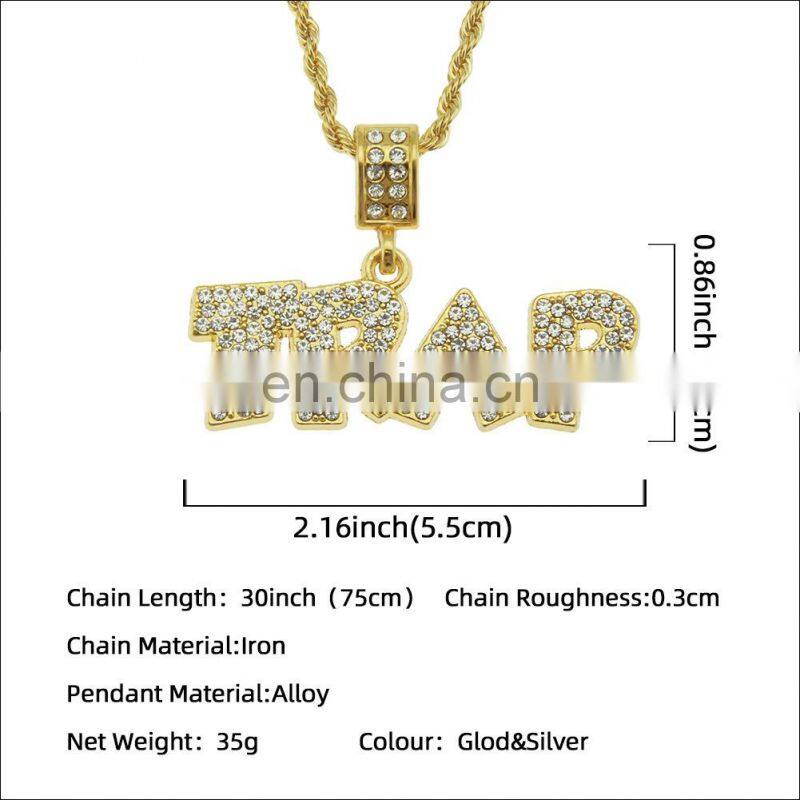 HipHop Jewelry Necklace Gold/Silver Color Iced Out Micro Pave CZ Stone @ $ Letter Pendant Necklaces With 60cm Rope Chain