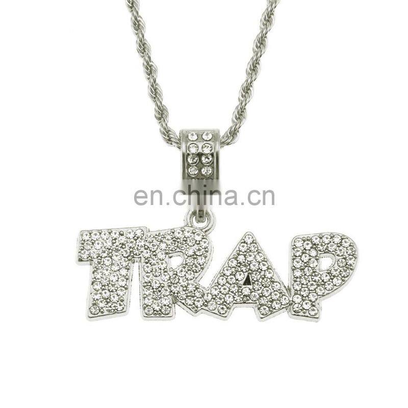Hiphop Jewelry 2021 Micro Pave CZ Zircon Stone Pendent Iced Out Diamond Rap Charm Braided Steel Chain SAVAGE Letter Necklace