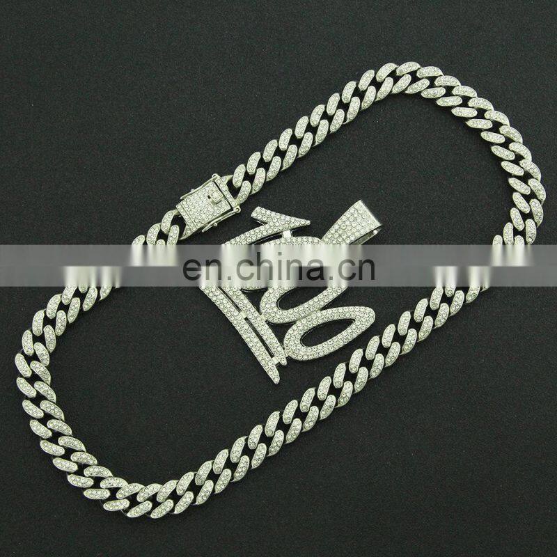 Hip-hop Digital Domainy Hangtag Cuban Chain Necklace for Men Full Diamond 1000 Point Pendant Hipster Street Accessories