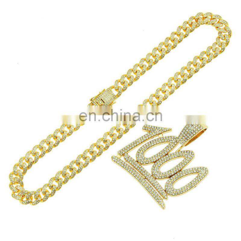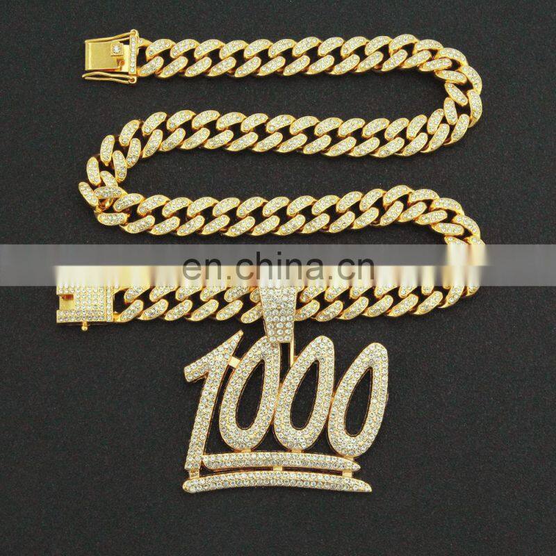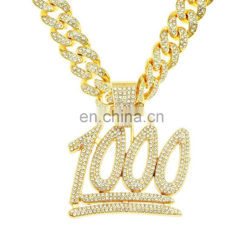 High Quality Hip Hop Digital Pendant Cuban Link Chain Necklace Jewelry 18K Gold Plated Diamond 1000 Point Necklace