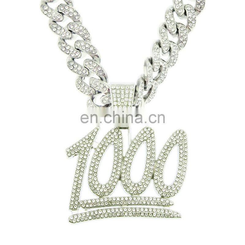 New Men's Hip-hop Cuban Chain Necklace Accessories Men's Full Diamond Digital 1000 Pendant Only Pendant