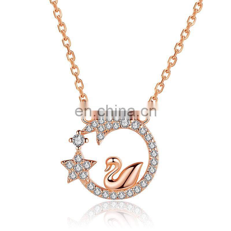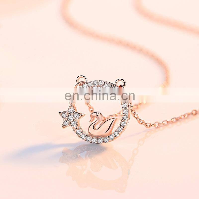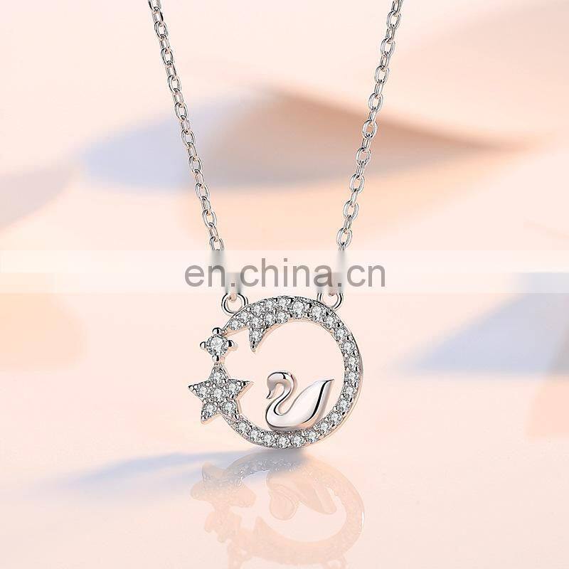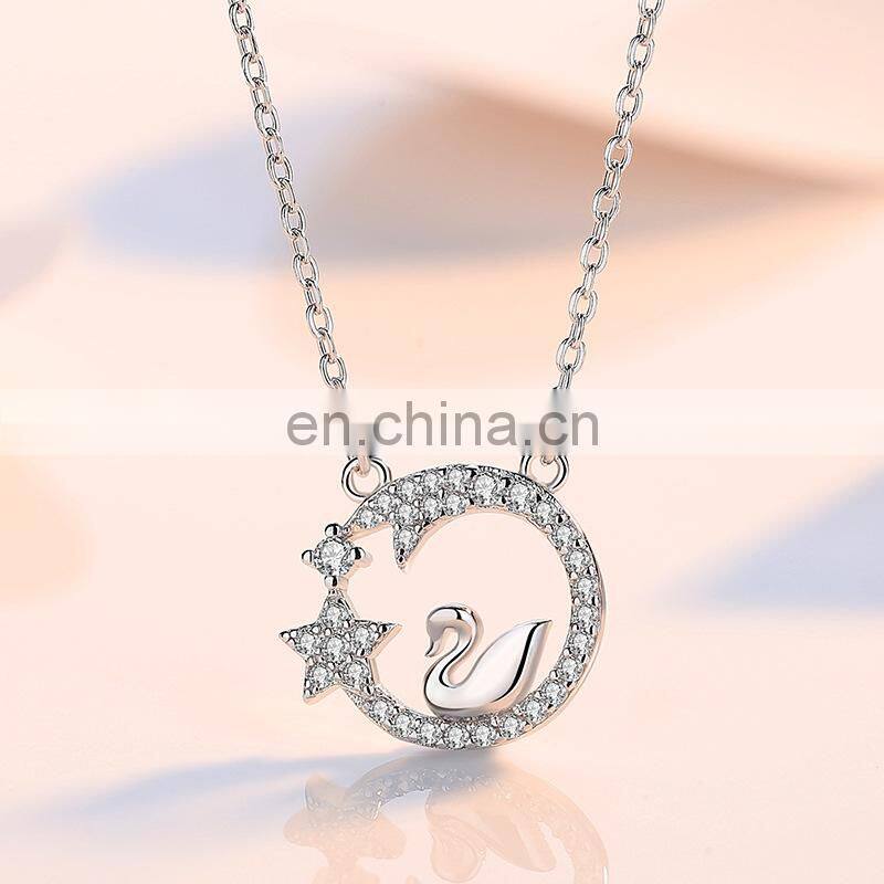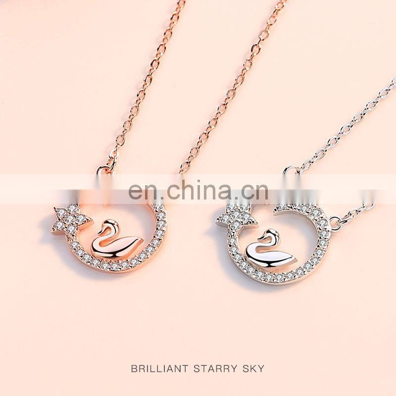 2021 New 925 Sterling Silver Necklace Woman Jewelry Cute Animal Small Swan Zircon Pendant Necklace