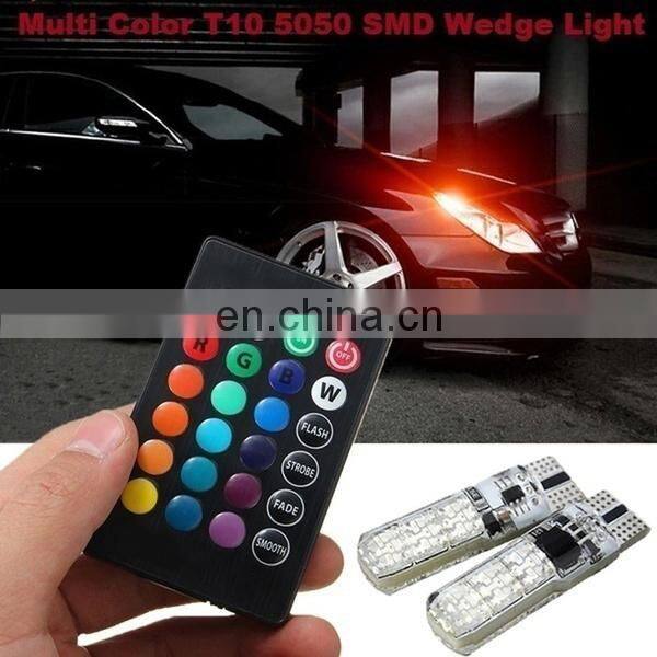 2X T10 Waterproof W5w 501 360 Degree Car Led Light Bulbs Wedge Side Light Bulbs For Car Bulb-6Smd 5050 Rgb 7 Color Led Remote