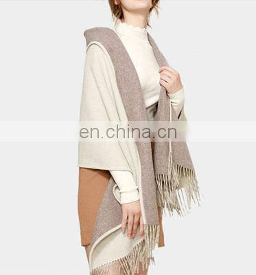 Women Cashmere Poncho Sweater Pullover Color Block Style