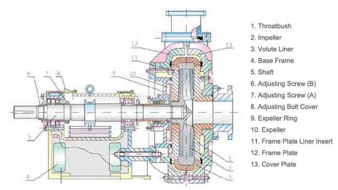 Over-current components can exchange ZGB and ZGBP type slurry pumps of the same caliber. Dimensions are identical. The transmission part ZGB series slurry pump adopts open standards thin oil lubrication carrier, and is provided with two groups of cooling sys,.
