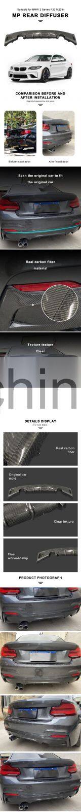 Home > Products > Carbon Fiber > Car Accessories Carbon Fiber Style Car Bumper Rear Diffuser Rear Spoiler Bodykit Rear Lip With Light For BMW 2 Series F22 M235i