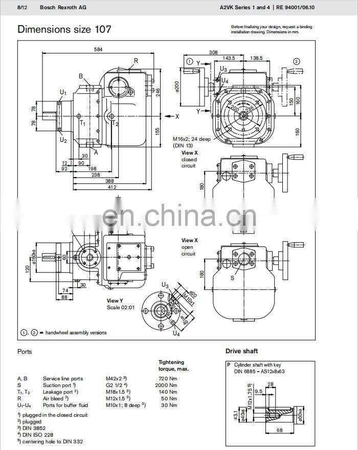 REXROTH A7VO Series A7VO28LR/63R-NPB01 A7VO55DR/63R-NPB01 A7VO80LR/63R-NZB01 A7VO160EP/63R-NPB01 Hydraulic Variable Piston Pump