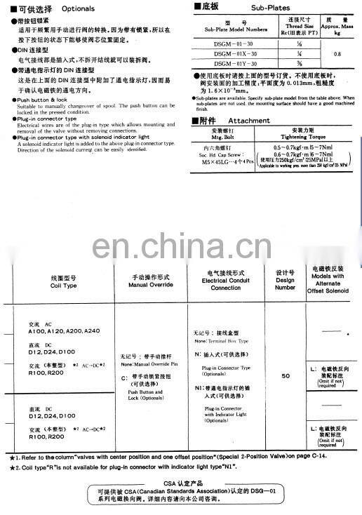 Top Quality YUKEN Reversing Valve DSG-01-3C60-A240-N1-50