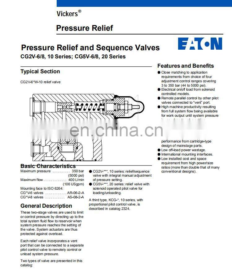 EATON VICKERS CG2V-8FM/8GM/8BW/8CW/8FW/8GW-10 Hydraulic Valve