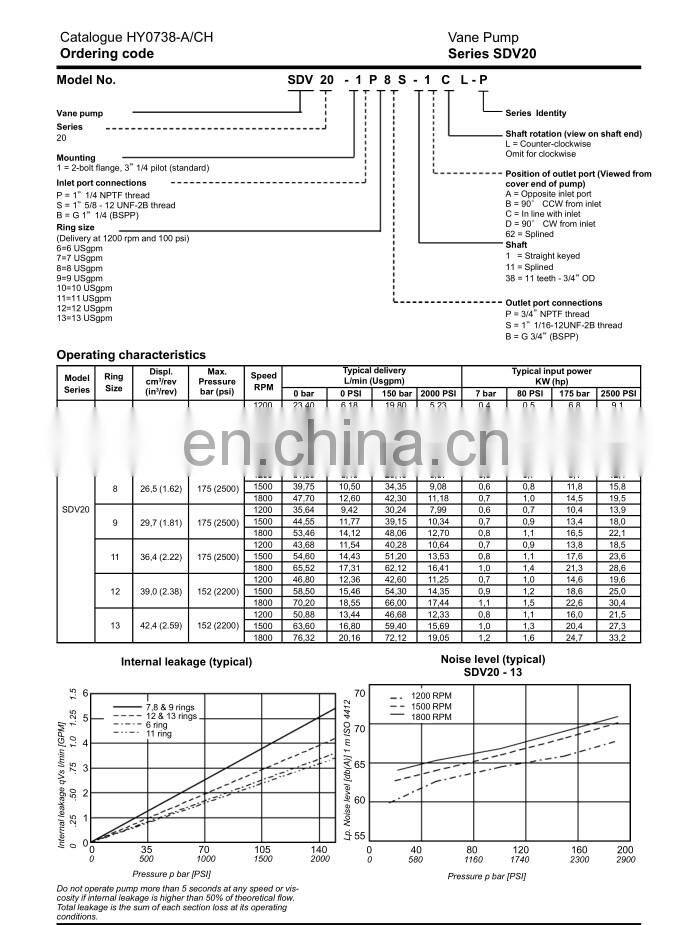 Parker Denison SDV SDV10 SDV20 SDV2020 hydraulic totary vane pump SDV20 1P8P/1P9P/1P10P/1P11P/1P12P 1C/1A/1B/1D SDV20-1P11P-1B