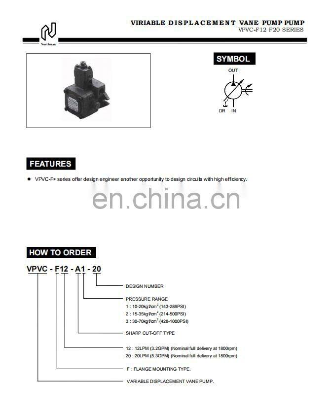 WINMOST Northman VPVC-F12/F15/F20/F30/F40-A1/A2/A3-10/02/20 Series VIRIABLE DISPLACEMENT VANE PUMP VPVC-F12-A3-10