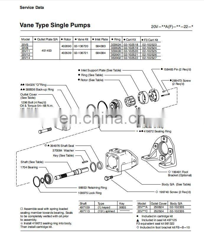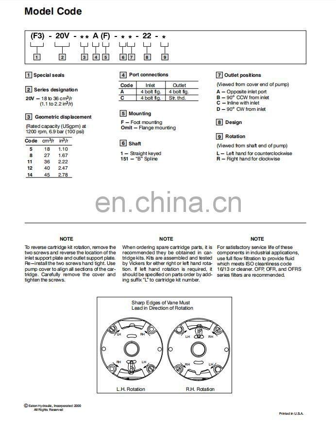 Vickers 20V5 20V8 20V11 20V12 20V14 20V-5A/8A/11A/12A/14A-151A/151B/151C/151D-22L/22R Hydraulic Single Vane Pump 20V-8A-151C