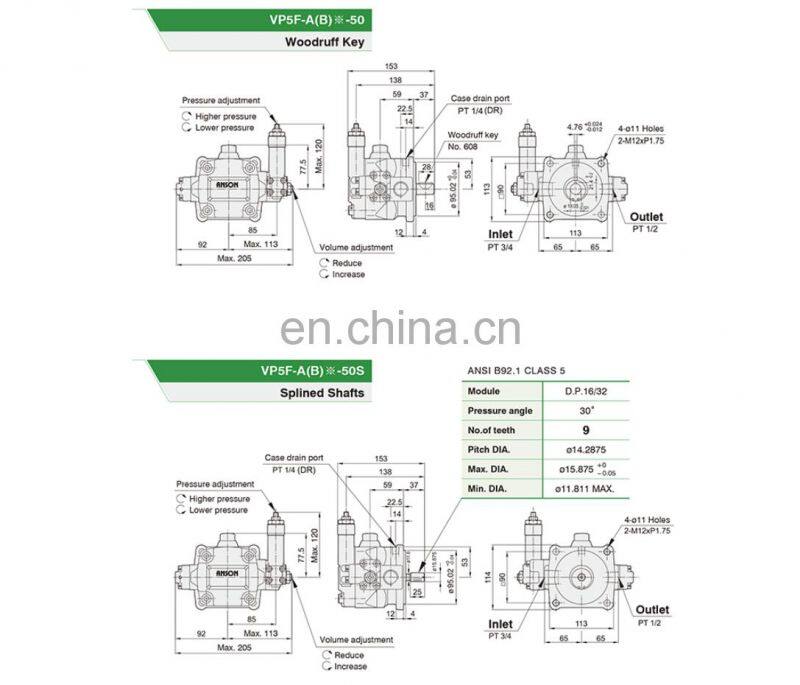 Anson VP5 VP6 VP7 VP5F VP6F VP7F VP5F-A5-50S VP5F-B5-50S series Variable Displacement Vane Pump