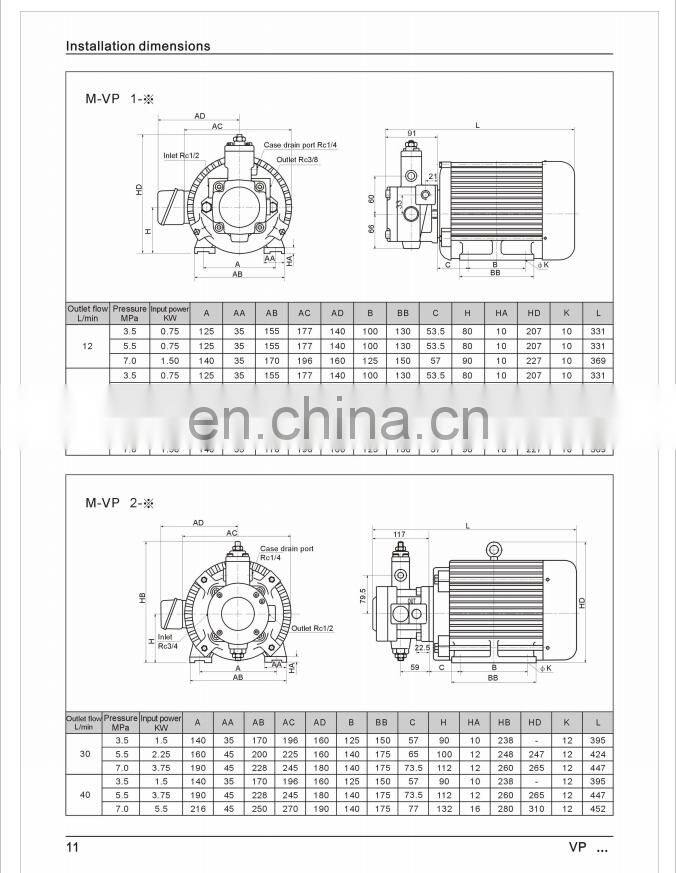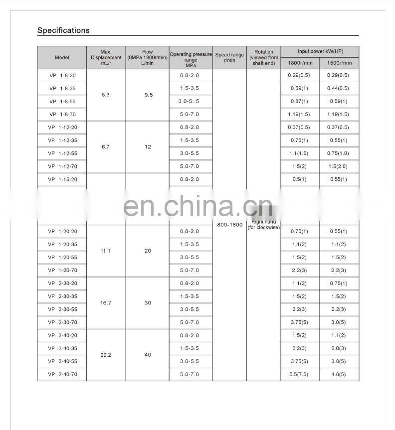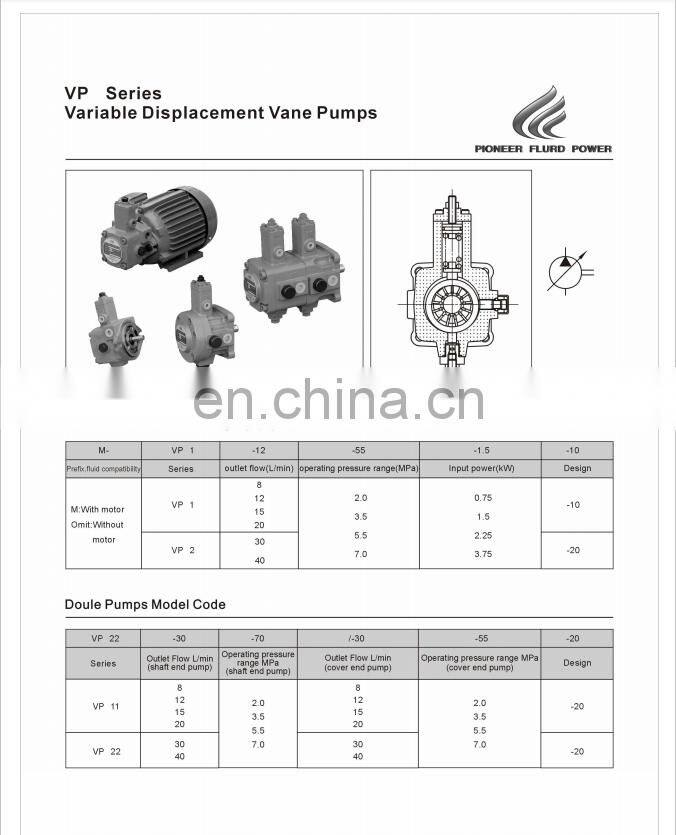 YEESEN HYDLIC VP/VP1/VP2-8/12/15/20/30/40-FA1/FA2/FA3 series variable displacement vane pumps VP-12-FA3