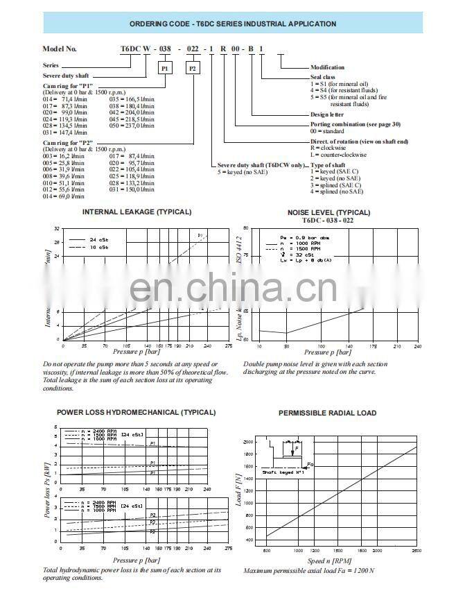 Parker Denison Hydraulic Pumps T6CC T6CCW-014/017/020/022/025/028/031-003/005/006/008/010/012-1R00/2R00/3R01/5L00/1R03-C111