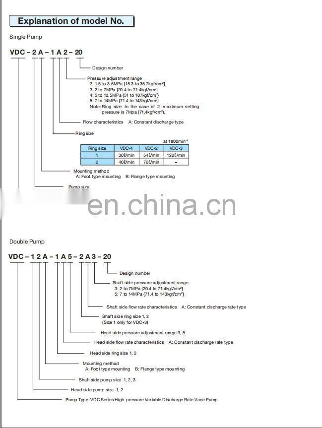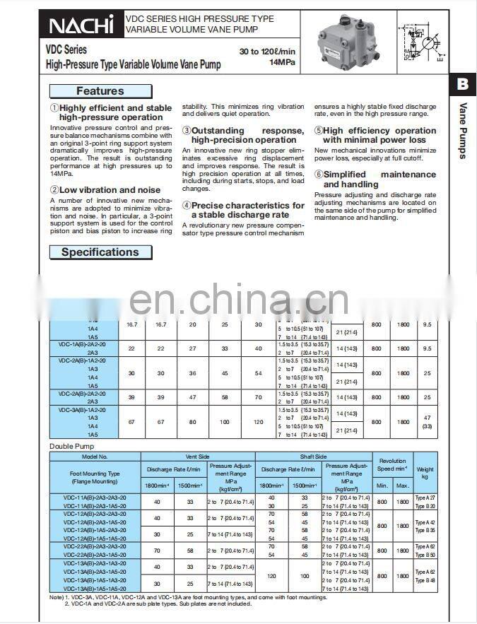 Nachi VDC-2B-1A5-E35 High Pressure Variable Volume Vane Pump VDC-1B/2B/3B-1A2/1A3/1A4/1A5-10/20/35 series