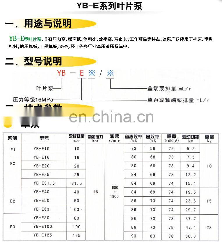 Home > Products > vane pump > Yongling YB-C/E200/125 YB-D355 Double High Pressure High Performance Vane Pump YB-D YB-C/E