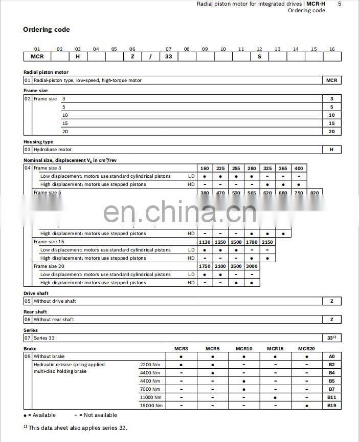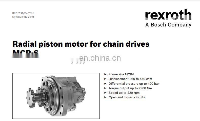 REXROTH MCR 3/5/10/15/20 Series MCR20C3000F280Z32/A0 MCR5H520ZZ32B2M48S0396 Drive Hydraulic Radial Piston Motor