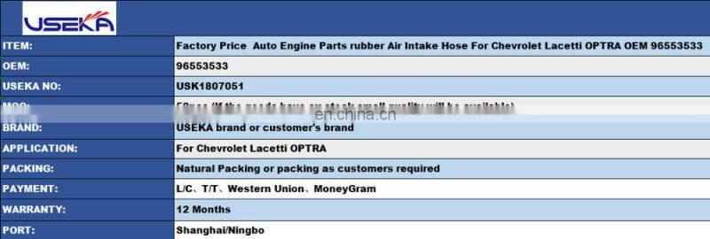 Home > Products > For Chevrolet parts > Factory Price Auto Engine Parts Rubber Air Intake Hose For Chevrolet Lacetti OPTRA OEM 96553533