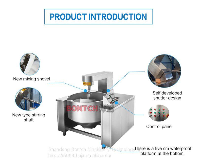 The fully automatic planetary wok can be used not only for cooking sauce, but also for cooking, fried bean paste, lotus paste, jujube paste and other fillings, fried flour, cake noodles, hot pot base and other high-viscosity materials, and boil Ejiao, snow skin, etc. More sensitive materials, as well as cooking soup, porridge, cooking pork ribs and other dishes, a machine with multiple uses and multiple functions