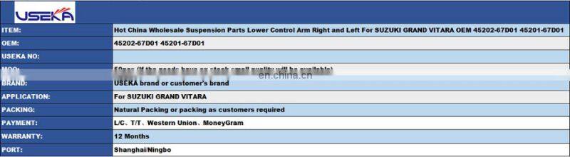 Hot China Wholesale Suspension Parts Lower Control Arm Right and Left For SUZUKI GRAND VITARA OEM 45202-67D01 45201-67D01