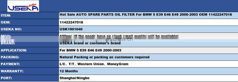 Hot Sale AUTO SPARE PARTS OIL FILTER For BMW 5 E39 E46 E49 2000-2003 OEM 11422247018