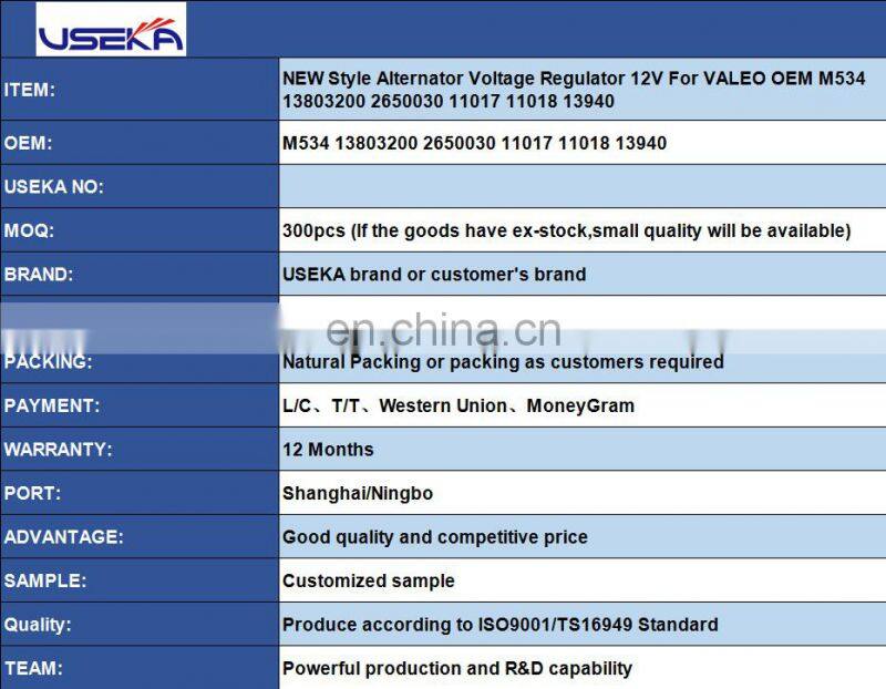 Home > Products > Ungrouped > NEW Style Alternator Voltage Regulator 12V For VALEO OEM M534 13803200 2650030 11017 11018 13940