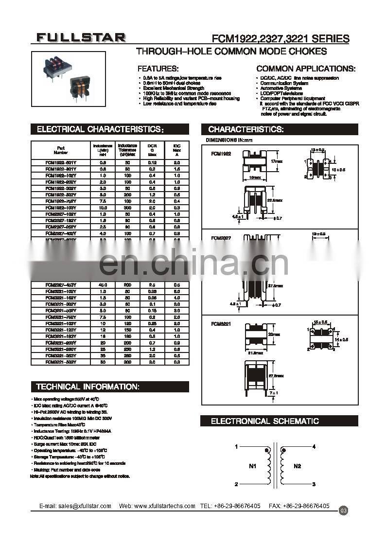 0.8A Common Mode Chokes Filter Inductor FCM2327-602Y 6mH Dual Chokes Inductor