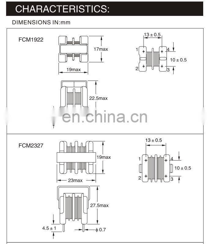 0.8A Common Mode Chokes Filter Inductor FCM2327-602Y 6mH Dual Chokes Inductor
