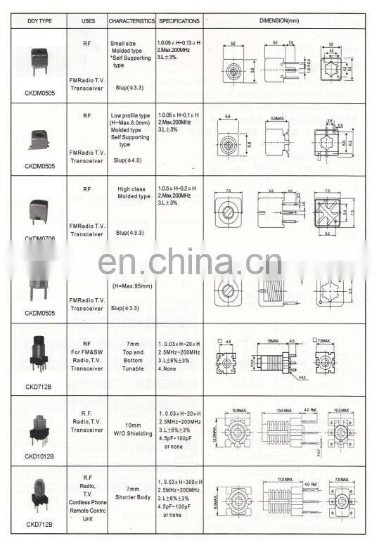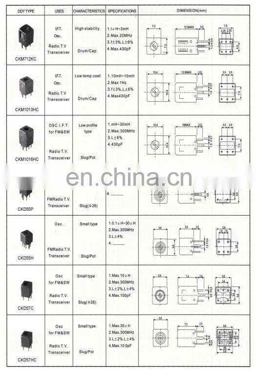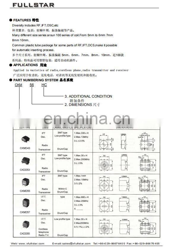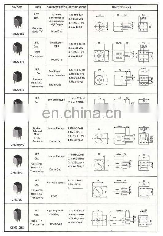 China Factory Through Hole SMT SMD IFT Adjustable Coil 1 to 1200uH Inductance.