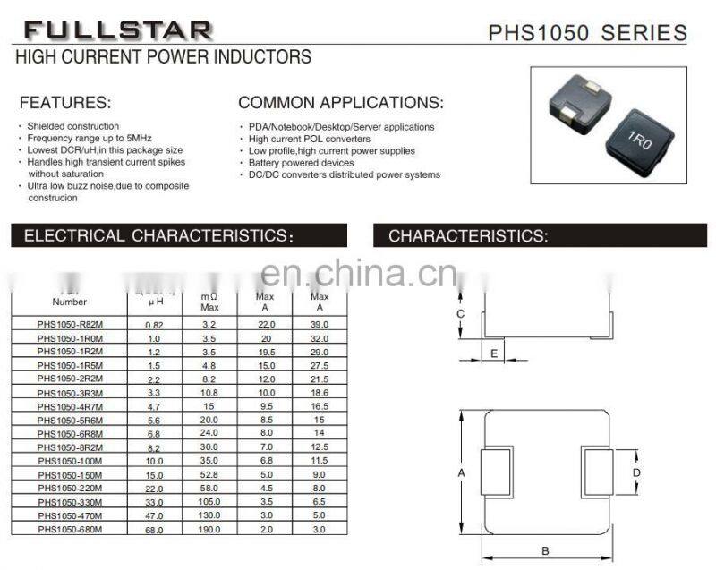 Product features | I. Integrated construction to avoid noise 2.The magnetic shielding effect of the fully enclosed structure can effectively reduce electromagnetic interference. 3. Minimum DC impedance of the same size 4. It can ensure that the current resistance inductance value drops smoothly. 5. Application frequency up to 5MHz | ||||