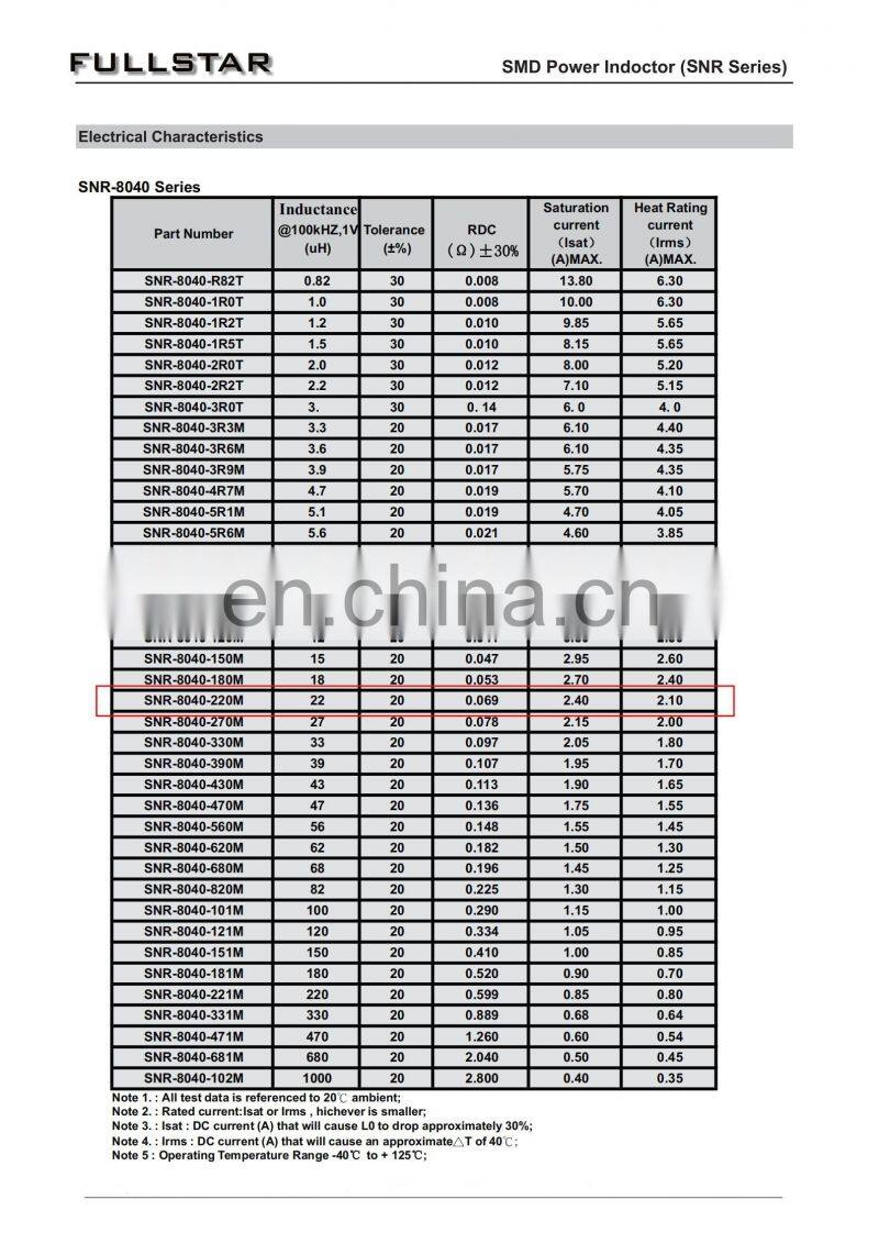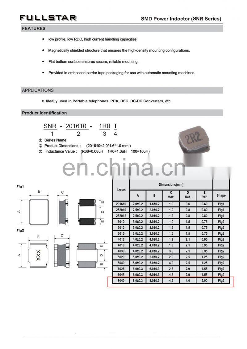 Datasheets of SNR 8040 Series semi-Sheilded SMD inductor